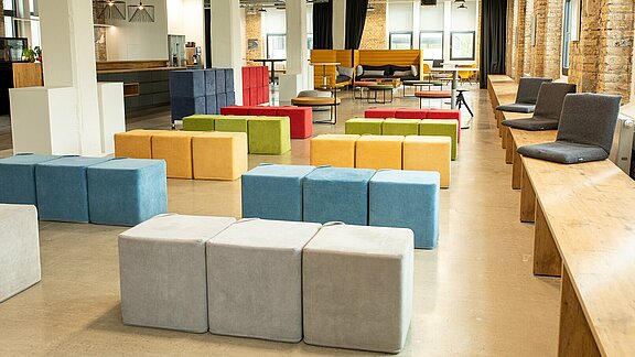 With its industrial look, the Lufthansa Systems FlyingLab in Raunheim (near Frankfurt) offers an open and casual atmosphere to generate ideas for new products and services within creativity workshops, which can also be prototyped and tested.
