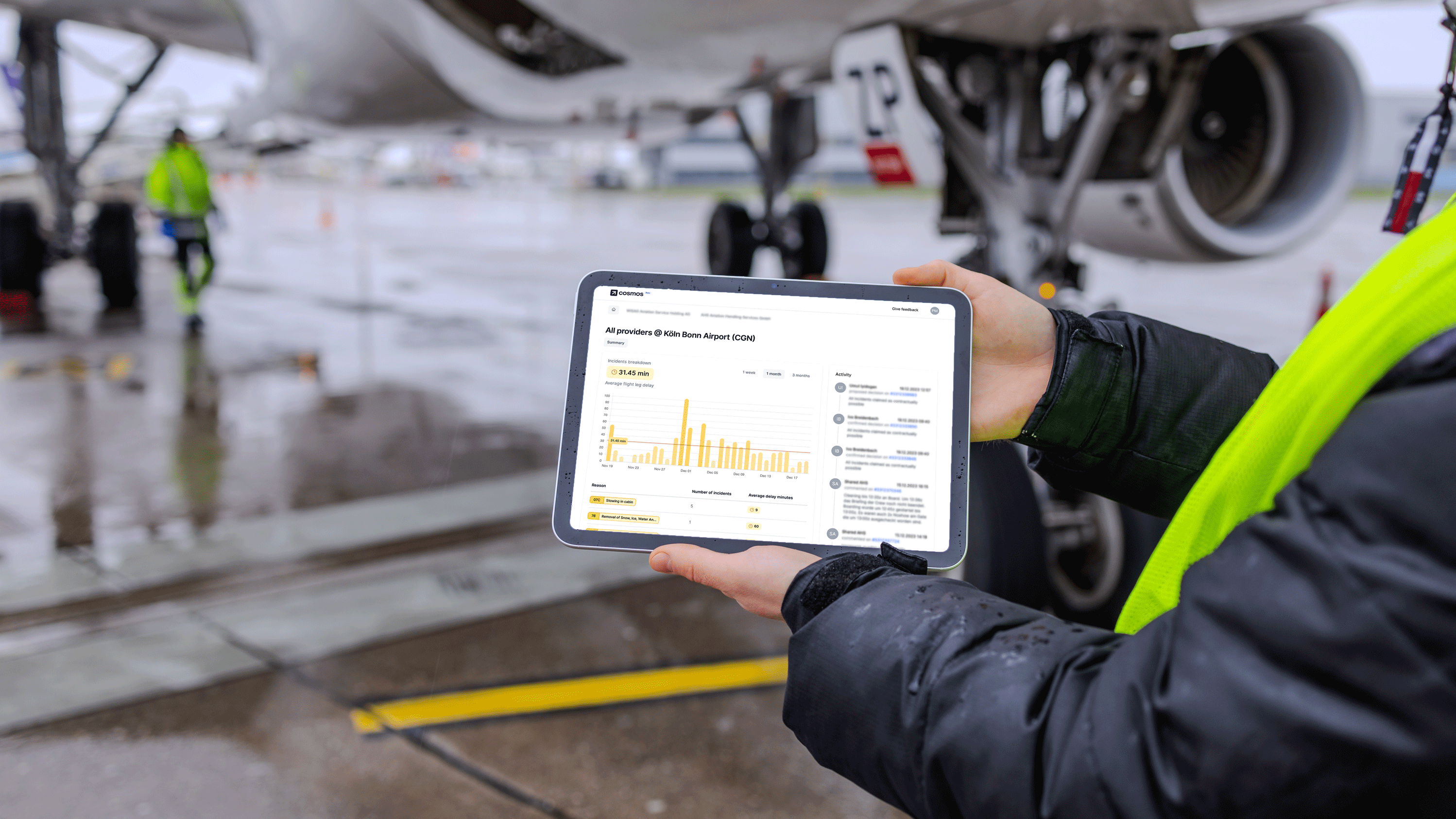 For the Lufthansa Group, the vast network of more than 300 destinations and over 1,000 service providers is a complex matrix to manage. Insight into the problems service providers encounter is crucial to improve turnaround operations. In the past, fragmented systems led to communication barriers and little transparency about the reasons of low performance. Contractual penalty payments as the only lever to steer service providers resulted in a lack of trust and finger-pointing when things go wrong. Cosmos steps in by providing an innovative solution to empower a trusted, collaborative, and data-based relationship between Lufthansa Group and their service providers. Cosmos is a shared platform, where both parties have access to performance-dashboards a single source of truth and basis for discussion. Incidents, such as delayed flights are collected on the platform, where Cosmos encourages the service provider to leave comments to shed more light on the problems, while airline managers can respond in real-time. Cosmos encourages and documents this interaction, enriches it with real-time flight information and leverages advanced machine-learning capabilities to uncover patterns and details that were previously inaccessible.